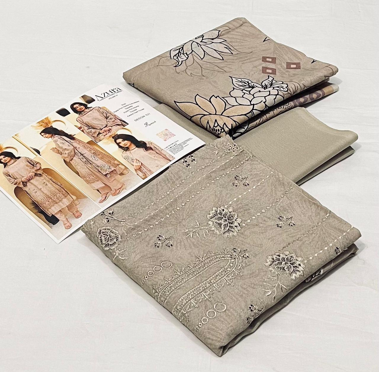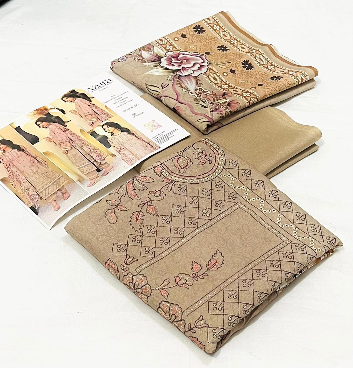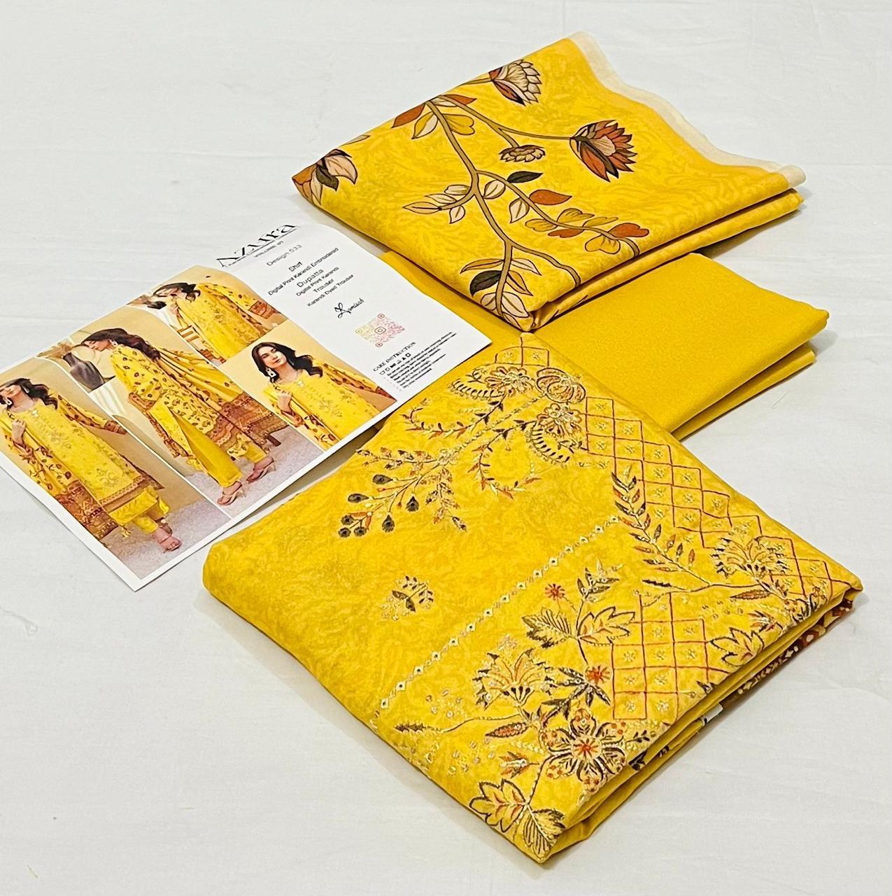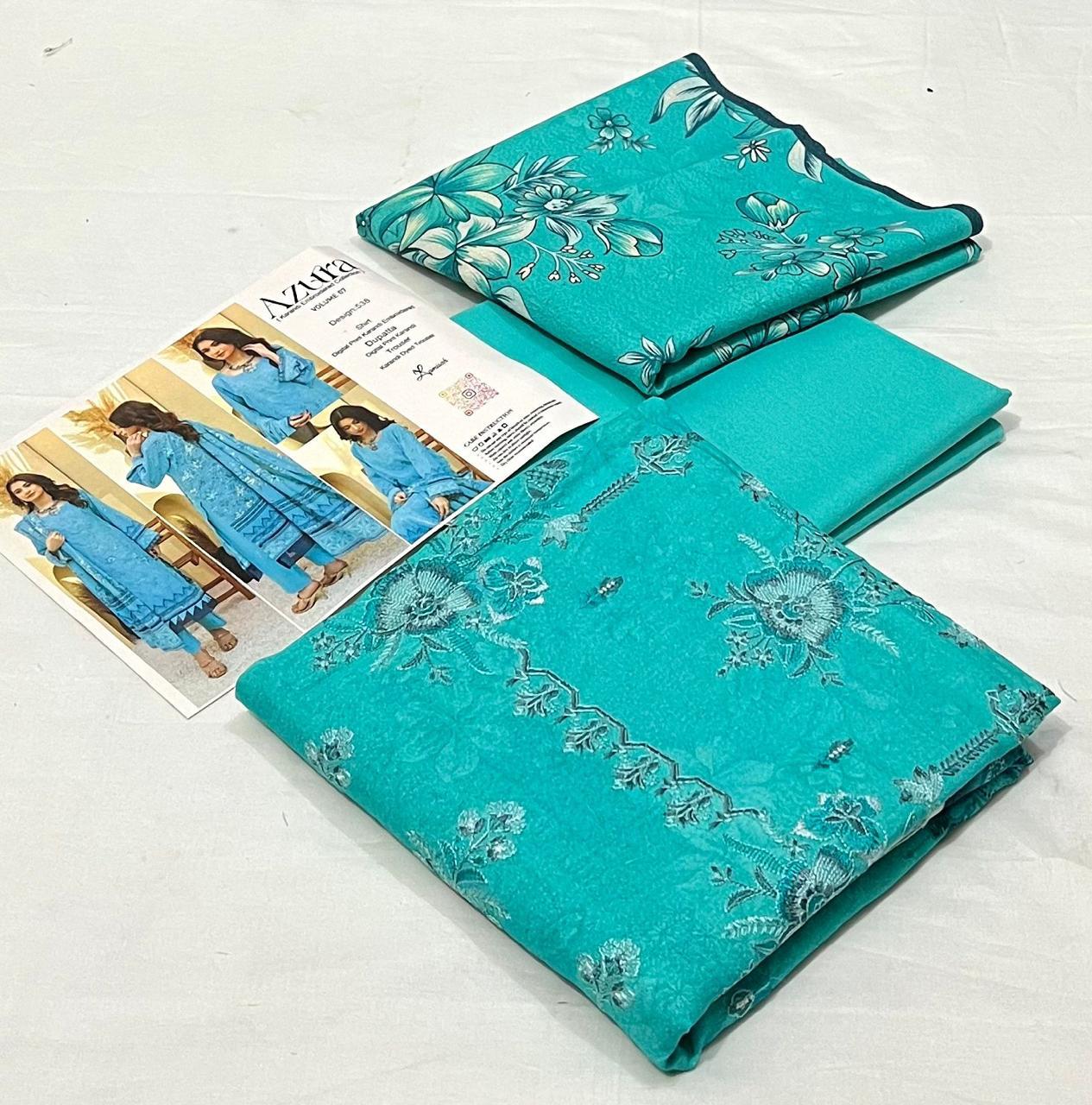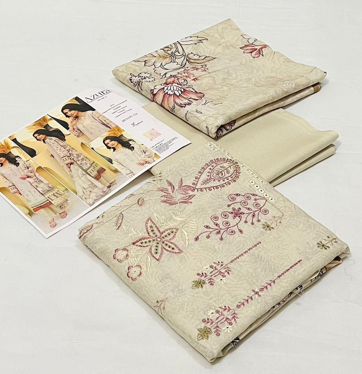 Azura by Lamisha 💯 Original 3pc Printed Embroidery karandi Collection